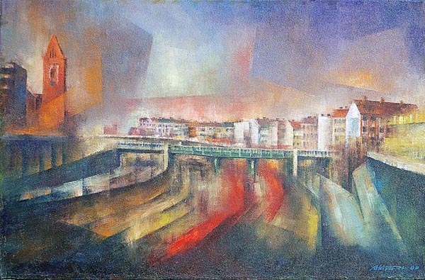 Berlin,Blick von Kaiserdammbrücke,40 x 60 cm, Öl auf Leinwand, 2000, Nr. 157 (Privatbesitz)