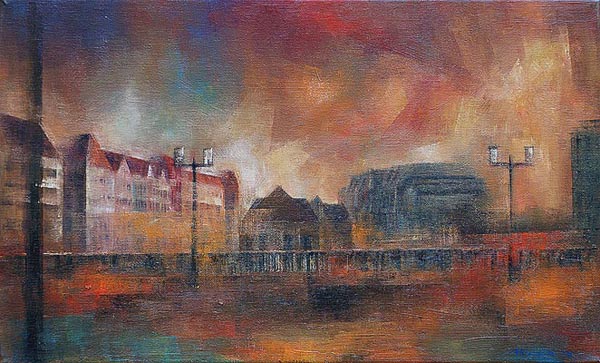 Berlin,Kaiserdammbrücke/ICC,30 x 50 cm, Öl auf Leinwand, 2002, Nr. 042